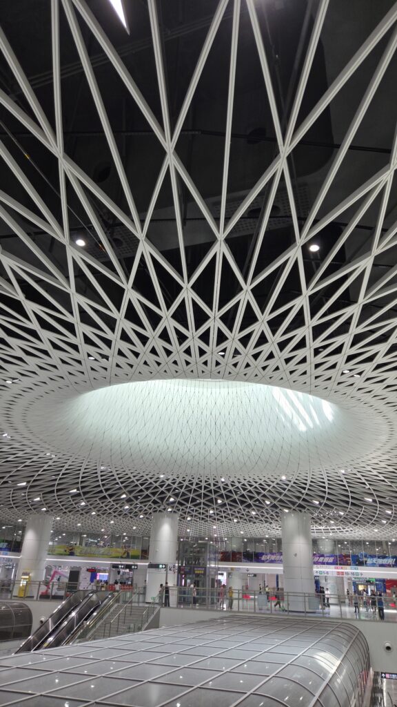 Otra manera de llegar hasta Shenzhen es hacerlo en tren de alta velocidad. La principal estación es Shenzhen North Railway Station, donde llegan la mayoría de trenes rápidos desde ciudades como Guangzhou, Shanghái o incluso Pekín. También es muy habitual utilizar la estación de Futian, especialmente si vienes desde Hong Kong, ya que conecta directamente con el tren de alta velocidad que cruza la frontera. Ambas estaciones están bien conectadas por metro, por lo que moverse desde allí es bastante sencillo.