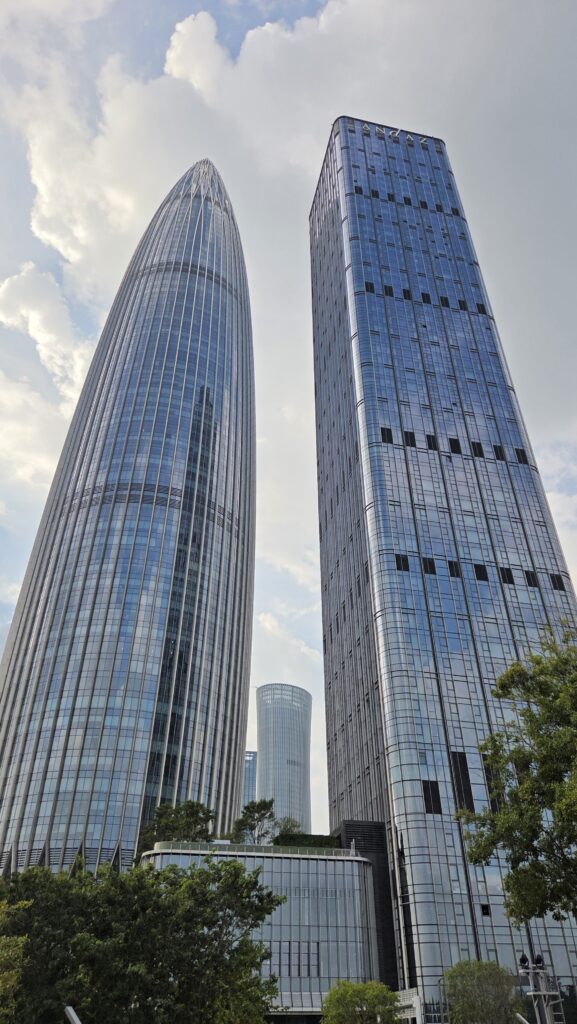 Si hay un lugar en Futian que sobresale por encima de todos es el Ping An Finance Center. Este rascacielos no sólo está considerado uno de los grandes iconos de Shenzhen, sino que entra directo en el ranking de los más impresionantes del mundo. Con más de 590 metros de altura, domina completamente el skyline y es visible desde prácticamente cualquier punto del centro de Shenzhen.